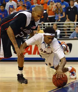 The score remained close earlier as Anthony Smith hit a three-point basket from the corner to cut a Florida lead to two points, 9-7, with 16:01 remained in the opening period. But, the Gators went right down the court and answered with a three-point basket of their own by a wide open Taurean Green to make it 12-7 with 15:44 left in the half.
