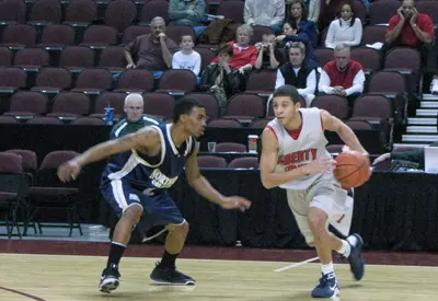 Two Jesse Sanders' free throws at 16:34 gave Liberty its first lead since the opening four minutes of the game. Sanders' markers gave Liberty a one-point lead, 41-40, and completed a 9-2 Liberty surge.