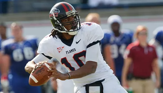 Patrick Morgano's punt pinned Liberty at the one-yard line, but Brown led the charge for the Flames to regain the lead. Brown carried the ball five times for 48 yards and completed two passes for 28 yards on the drive, setting up a one-yard burst by Holloway up the middle for the score. The burst completed a nine-play, 99-yard scoring drive, the longest of the season by the Liberty offense.
