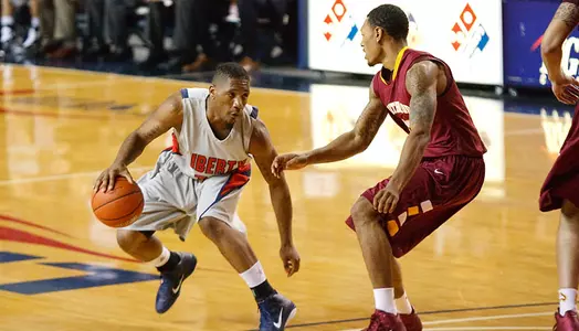 Liberty countered with a burst of its own, going on an 8-0 run thanks to a John Brown layup, an Evan Gordon three-pointer and free throws from Jesse Sanders and Gordon. The Flames eight-point swing gave the home team a 14-11 cushion with 12:30 remaining in the period.
