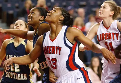 The Lady Flames used their considerable size advantage to outrebound CSU, 17-11, and outscore their guests inside the paint, 22-4. Liberty also scored 17 points off of the Buccaneers' 14 first-half turnovers.