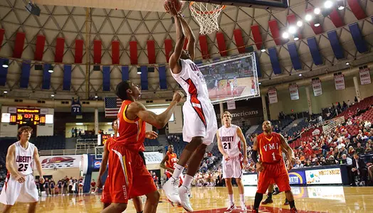 The Flames expanded their advantage to 18 points at the 9:40 mark, when Burrus threw down a two-handed jam. VMI made it a 14-point margin a minute later, but the Flames responded with a six-point burst off a free throw by Sanders, a Gordon three-pointer and a fast break layup from Brown to go up by 20, 78-58, at 7:36.