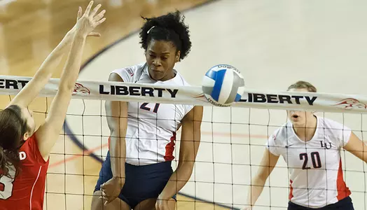 Liberty's Caroline Douglas led all players with 14 kills. Lillie Happel recorded 12 kills, while Loren Thomas hit .500 in scoring 10 kills, to go with a match-high six blocks. Jade Craycraft registered 41 assists and a match-high 15 digs for her 20th career double-double. Kendle Rollins sent down eight kills on 11 attempts (.727), and Gabrielle Shipe had 11 digs.