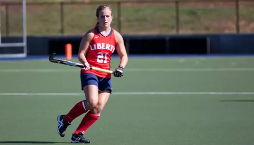 Liberty added to its lead in the 12th minute off of a penalty corner opportunity. Hannah Jones inserted the ball into the top of the circle to Natalie Barr. The freshman struck the ball to Abbey Basom, who ripped a shot past Davidson goalie Sarah Fisher into the goal for a 2-0 Liberty advantage.