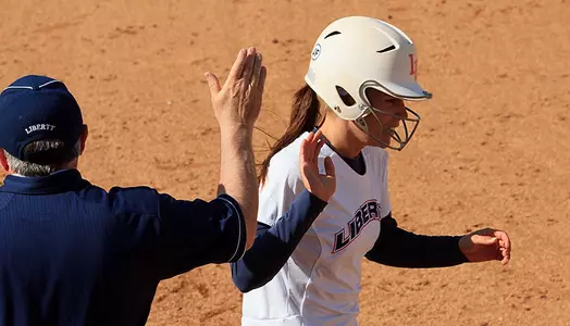 The Lady Flames had eight hits in game one. Kelly Strickland went 2-for-3 with a home run, two runs scored and two RBIs. Strickland is now in sole possession of second place all-time at Liberty with 45 career homers. Jenny Law hit 2-for-3 with a homer and four RBIs, while Kelby Allen also had two hits.