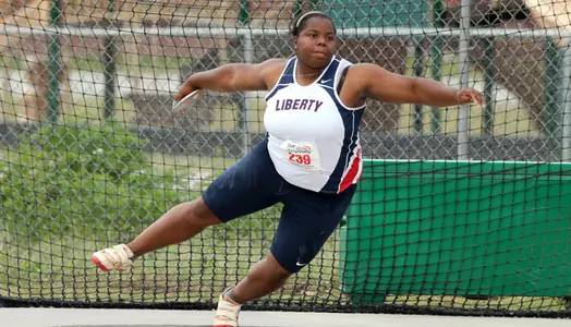 Liberty freshman Mychelle Cumings unleashed a 159-3 throw in the women's discus competition, Friday afternoon at the Robert C. Haugh Track & Field Complex. That effort netted an eighth-place finish at the 2012 USA Junior Outdoor Track & Field Championships.
