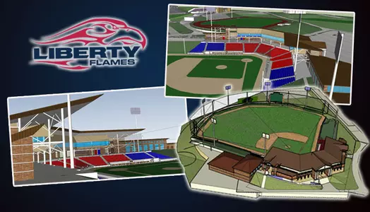 The new stadium is scheduled to be ready for the opening of the 2013 season. The stadium is the latest improvement to Liberty's athletics facilities in recent years. It will feature chairback seating for 2,500 spectators, a state of the art press box, a field turf playing surface, suites and a club room. In addition, the stadium will become the operations center for the Flames baseball program with coaches' offices, a weight room, a training room, locker rooms, team room and indoor batting tunnels.