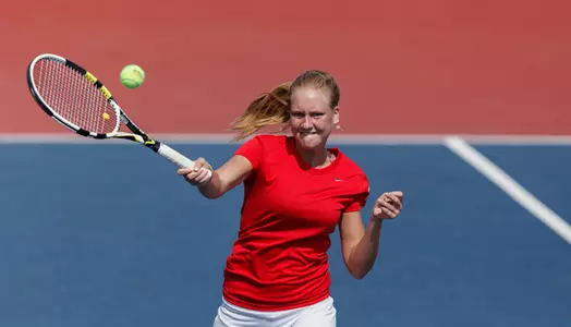 Jenkins and Wellman finished off the afternoon with wins in the No. 2 and No. 5 positions, respectively. Jenkins captured the first set versus Bates, 6-4, before dropping the second 3-6. The Florida native bounced back and took the third and final set 6-2 to even up her singles record on the season at 3-3. Wellman downed Alicia Robinson, 6-3, 4-6, 10-7, for her fourth consecutive singles victory of the season.