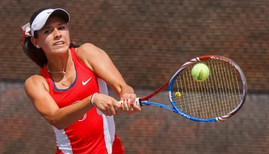 The Lady Flames' Nicola Wellman and Belen Rivera began the day with a 6-2 victory against Sandrine Beaule and Lissa Pacheco-Brousseau in the No. 3 spot. The Eagles responded with a victory in the No. 2 position, as Andrea LeBlanc and Hayley Wild downed Valerie Thong and Brittany Yang, 6-4. The No. 1 team of Rebekah Jenkins and Maria Khval secured the doubles tally for Liberty by doubling up Briar Preston and Dominique McLean, 6-3. The victory moved Jenkins into fourth place on the program's career doubles wins list with 49.