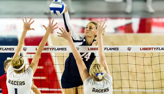 Redshirt junior Caroline Douglas scored a match-high 17 kills for Liberty, to go with a career-high 18 digs for her third double-double in a row. Freshman Hannah Weidner recorded 15 kills and five blocks. Sisters Jade and Sirena Vorster both posted 11 kills, while Jade Vorster tied her career high with nine blocks. Junior Caila Stapleton registered 50 assists and nine digs. Senior Gabrielle Shipe collected a match-high 27 digs, while sophomore Kate Corson totaled a career-high 14 digs and junior Allie Reynolds had 12 digs.