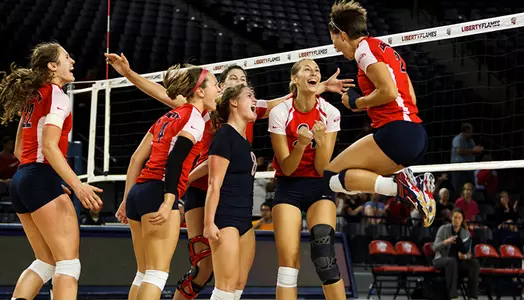 The Liberty Lady Flames rallied from a 2-0 deficit to down UNCG, 3-2 (18-25, 17-25, 25-22, 25-18, 15-8) during the final match of the Liberty Invitational, Saturday at the Vines Center.