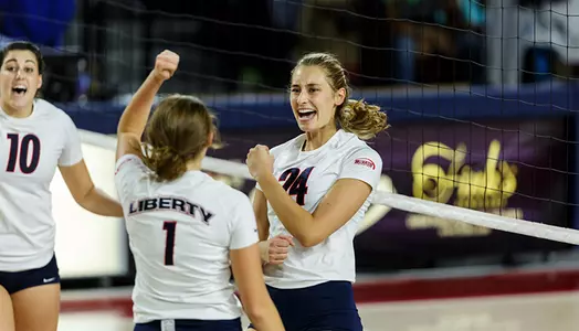 Liberty's Jade Vorster scored a career-high 19 kills, hitting .571, while also adding a match-high four block assists. Vorster eclipsed the 400-block mark for her career on Friday. Sirena Vorster hit .529 with 10 kills, while Caroline Douglas and Hannah Weidner added nine kills each. Anna Willey recorded a double-double while setting new career highs in both assists (48) and digs (13). Margaret Latchford collected 20 digs, while Allie Reynolds totaled 13 digs and Haley Jeffcoat tallied 11 digs.