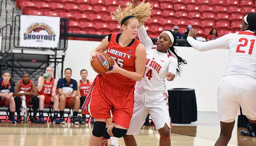 Liberty falls to 2-3 with its third straight setback, despite shooting 49.1 percent (26-of-53) from the field, outrebounding Ohio State by 11 (42-31) and getting productive afternoons from starting post players Ashley Rininger (18 points, six rebounds) and Catherine Kearney (season-high 11 points, eight rebounds).