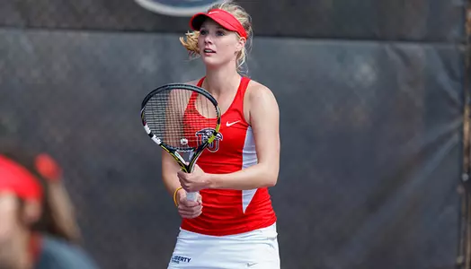 The two singles victories came from Maria Khval and Emily Groeneveld, both advancing the singles finals of their respective brackets. Khval gained passage to the Flight A Singles final after besting teammate, Evangeline Crist in straight sets, 6-1, 6-4. The junior will take on Sofiko Kadzhaya of No. 17 TCU in the final tomorrow. Kadzhaya has notched two consecutive victories over Lady Flames en route to the finals match and setting up a third consecutive matchup with a Liberty player.