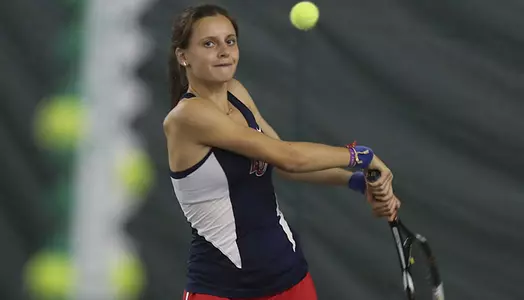 The match was clinched in favor of the red and blue after a straight set victory from Khval from the No. 3 singles position. Khval bested Karangozishvili, 6-3, 6-0 to catapult the Lady Flames over Campbell, 4-0.