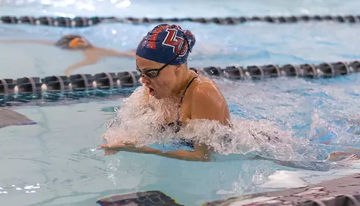 On Saturday, Liberty won six out of 10 swimming events, including four individual events and both relays. For the meet as a whole, the Lady Flames captured first place in nine individual events and won all three relays that were contested.