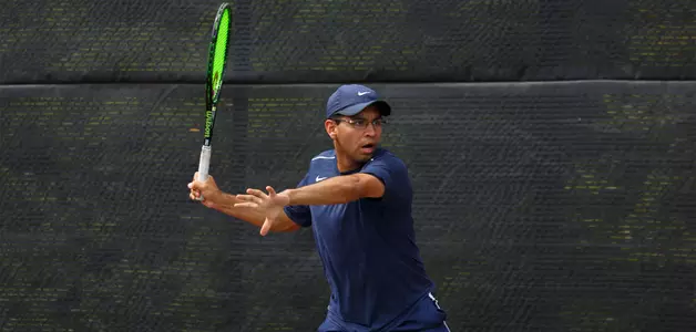 Following a first-set tiebreaker (7-6 (2)) victory, Burton dominated the second set, 6-0, for a 7-6 (2), 6-0 triumph over the George Mason Patriots' Jakob Nielsen.