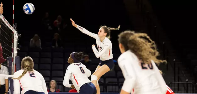 Casey Goodwin scored a season-high 19 kills (.444) to lead all players, while Jenna Culhan hit .375 while scoring a career-high 12 kills. Margaret Latchford collected a match-high 26 digs, pushing her over the 1,200-career dig plateau. Anna Gragg posted 10 kills and four blocks, while Victoria Baptista tied her career high with 18 digs. Amaya Williams dished out a match-high 36 assists, while Gabrielle Vess registered 15 digs and three aces.