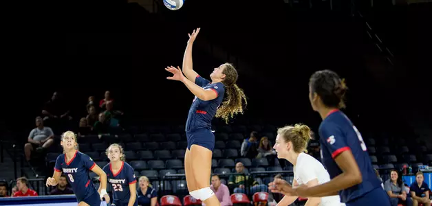 Anna Gragg sent down 14 kills at a .433 clip for Liberty, while Gabrielle Vess totaled 12 kills and 11 digs. Casey Goodwin recorded 11 kills and a career-high seven blocks. Amaya Williams registered 20 assists and 13 digs, while Margaret Latchford collected 20 digs. Latchford became the 17th player in program history with 1,100 or more career digs, at 1,114. Sirena Vorster contributed nine kills and five blocks, while Victoria Baptista collected 10 digs.