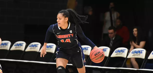 Liberty was limited to six points during a third quarter where it shot only 22.2 percent (2-of-9) from the floor. Northern Colorado took advantage, breaking the game open with a 12-1 run, going in front 53-41 on Krystal Leger-Walker's three-pointer at the 34-second mark. The Bears owned an 11-point advantage (53-42) heading to the final period.