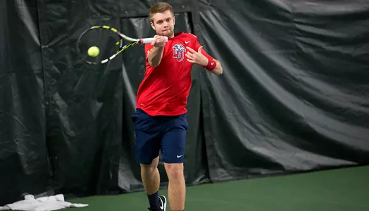 The outcome of the match was not decided until the final match of the contest. Liberty sophomore Max Borcuti overcame a first-set loss to win in three sets over Giuliano Buzoianu, 1-6, 6-4, 6-3 and secure a victory for the Flames.