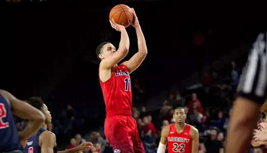 It was a slow start on offense for both teams as one field goal was made during the first four minutes of play. Liberty started the game 0-for-7 from the field and did not score its first points until the 15:58 mark off a pair of Brock Gardner free throws.