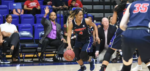 KK Barbour scored the Lady Flames' first eight points of the game, highlighted by a four-point play that jump-started a 7-0 run by the visitors. Barbour's nice pass to Green resulted in a layup, capping off the surge with Liberty on top, 10-5, at 4:27 of the first quarter.
