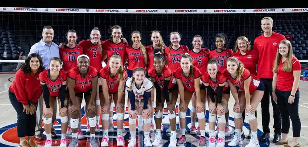 Liberty honored senior student-athletes Margaret Latchford and Victoria Baptista, along with student manager Emily Burnett, with a Senior Day ceremony prior to the first serve. Baptista led all players with 18 digs and Latchford collected 10 digs.