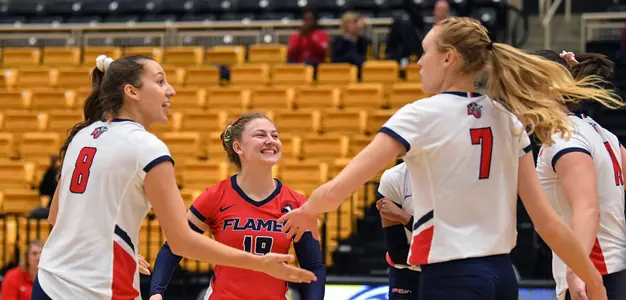 With the win, conference newcomer Liberty (15-16) earns a spot in tomorrow's first semifinal at 5 p.m. against top-seeded FGCU (24-6). The Lady Flames will look to derail the Eagles' 13-match winning streak. The winner of that match will advance to the conference championship contest, which will take place on Saturday at 7 p.m. Stetson's season ends at 16-13.