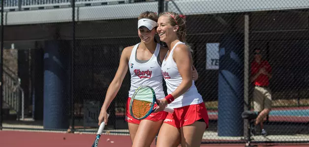 Liberty captured the doubles point for a sixth straight match, this time by winning two different tiebreakers (courts one and three). The Dukes appeared to be in good position following Anna Makarova and Emma Petersen's 6-2 win over the Lady Flames' Maria Medina and Lara Soares in the No. 2 doubles matchup.
