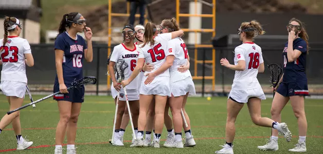 Liberty women's lacrosse won its home opener on Sunday, 14-9, over Robert Morris at the Liberty Lacrosse Field.