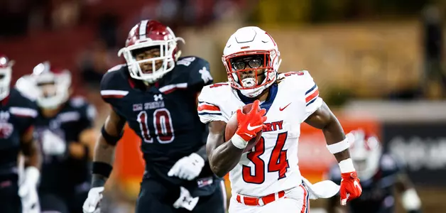 Mack accounted for more than half of Liberty's total offensive yards (177 of 334) for the game, including all 75 yards on the Flames' game-winning fourth quarter drive. The redshirt junior running back posted his first 100-yard game as a Flame, tallying 113 yards and a score on 16 carries. Mack also caught two passes for 64 yards on the night.