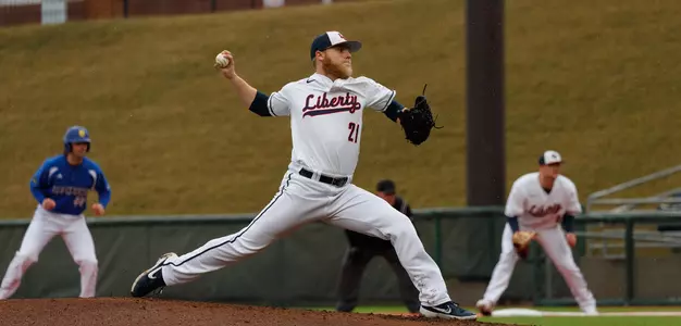 McInvale pitched six innings, allowing four runs, but only two earned, to record his first career victory at Liberty. Brabrand took over in the seventh inning and shut down the Blue Hens the rest of the way in the victory.