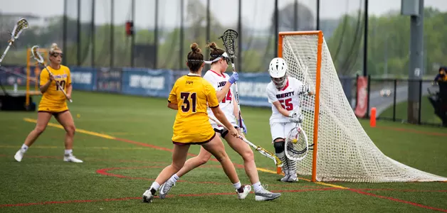 The Lady Flames received a career-high 13 saves from senior goalkeeper Katherine Widrick and three goals apiece from Anna Keebler, Kayla Foster and Carly White. Foster's first goal of the day was the 100th of her storied career.Liberty led 8-5 at intermission and pulled away due to its second half success in the draw circle (7-2) and swarming defense which only allowed 9-of-19 successful Sun Devil clears.