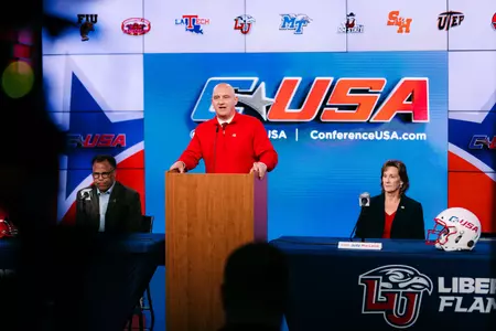 On Friday, Liberty Athletics and members of the Conference USA staff were on campus to hold a press conference to discuss the Flames joining the league.