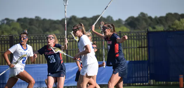 The Lady Flames held the Duke offense out of the scoring column for the final 12:52 of the first half and received goals from Mia Toscano (10:22) and Jordan Baerga (6:19) to trim the deficit to 11-3 at the half. However, Duke scored six of the first seven goals of the second stanza to pull away for the victory.