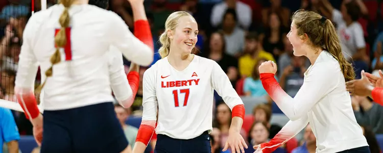 Liberty led Purdue Fort Wayne 8-4 in set five before the Mastodons rallied to clinch the five-set victory (25-18, 24-26, 10-25, 25-20, 15-10), Saturday at Liberty Arena.