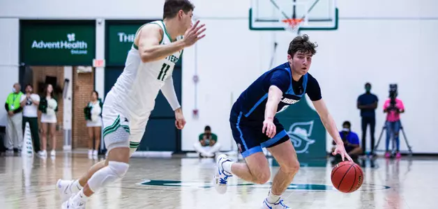 Right off the bat, Stetson got off to a hot start, jumping out to a 15-5 lead just five minutes into the game, sparked by the three-point shot. Liberty responded by closing the half on a 32-13 run to go into the break with a 37-28 lead. Liberty’s offense was attacking from all different areas as Keegan McDowell, Kyle Rode and Shiloh Robinson each scored nine points to lead the Flames in the first half.