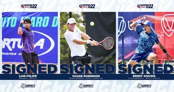 The Liberty Flames men’s tennis program and Head Coach Derek Schwandt have announced the additions of Luis Felipe Queiroz Miguel, Chase Robinson and Ernest Gouws. All three will join the Flames starting in January 2023.