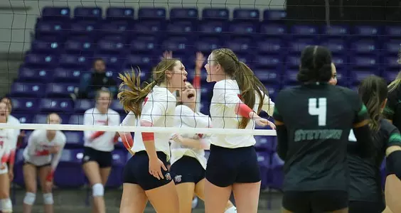 • Liberty middle blockers Lydia Burts (.438, two aces, five blocks) and Madison Blane (.344, five blocks) tied for the team lead with 15 kills each. Erica Lowery collected a match-high and career-high 27 digs, while Delaney Dilfer tied her career high with 58 assists to go along with 17 digs. Kamryn Bacus totaled 14 kills and 11 digs, while Kate Phillips (11 kills, 10 digs) also registered a double-double and Julia Mangum posted a season-high 10 kills and a career-high six blocks.
