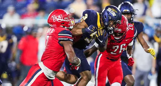 The Rockets followed with a game-decided 16-play, 80-yard touchdown to take a 21-7 lead with 10:35 left to play in the contest. Finn capped the drive with a one-yard rushing touchdown and then completed the two-point conversion pass play to put Toledo up two scores in the fourth.