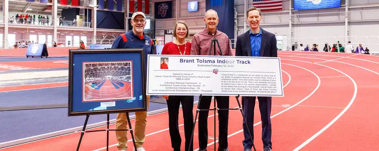 The Brant Tolsma Indoor Track was dedicated during a special ceremony at noon. The facility will now be officially known as the Brant Tolsma Indoor Track at the Liberty Indoor Track Complex, in honor of the Flames’ head coach for 34 seasons (1986-2020). Tolsma coached the Flames to 116 conference titles and six NCAA individual national titles in track & field and cross country. He oversaw 61 All-Americans and was a 77-time conference coach of the year.