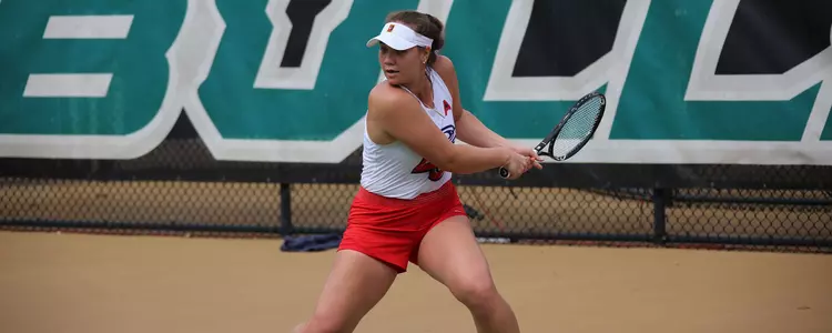• For the second straight day, it was the Lady Flames’ Parra Romero who clinched the match. The Liberty freshman ran her winning streak to six matches and improved to 7-1 overall after a 6-3, 7-6 (4) result over Grace Schumacher of the Bulls.