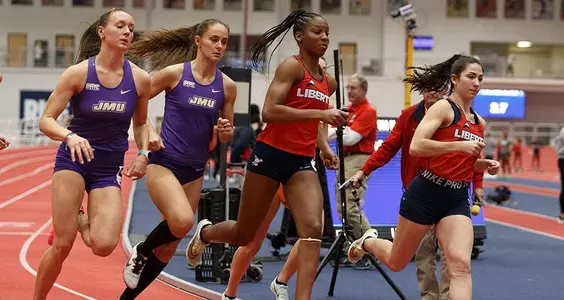 On a Thursday full of impressive multi-event performances, Liberty’s Patasha Bryan shattered her own Liberty freshman pentathlon record with a third-place score of 3,865. Teammate Meredith Engle finished just in front of her in second with 3,891 tallies on the opening day of the third annual Brant Tolsma Invitational, contested at the Brant Tolsma Indoor Track at the Liberty Indoor Track Complex.