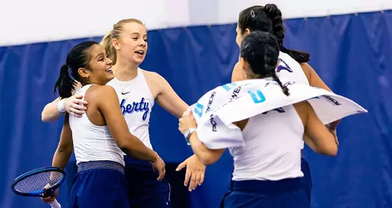Liberty got a vital point from its No. 1 singles player, sophomore Maria Juliana Parra Romero, who did not drop a game in defeating Jasmine Adams 6-0, 6-0.