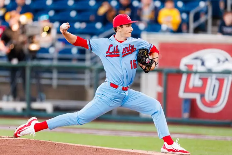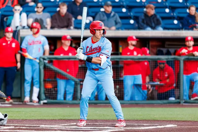 West Virginia right-hander Chasen Cole limited Liberty to two hits over 5 1/3 innings, striking out seven and walking two, to record his first win of 2026. He combined with three other Mountaineers to hold the Flames to three hits in the contest.