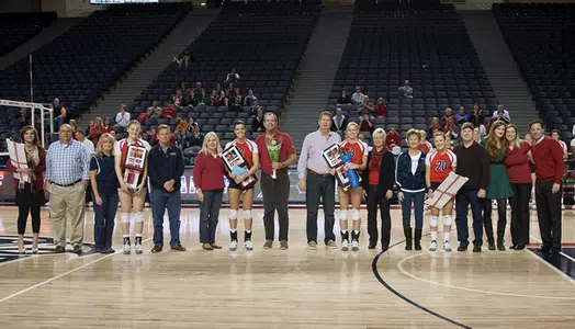 Prior to the match, Liberty honored five seniors – student manager Logan Shackelford, Jade Craycraft, Lillie Happel, Becca Haraf and Kendle Rollins.