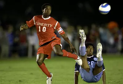 Liberty quickly erased the Tar Heels' advantage, scoring 17 seconds later. A shot by midfielder Chris Phillips (R-Fr., Brownsburg, Ind.) was blocked in front of the North Carolina goal by a defender. Boateng pounced on the rebound and blasted a shot into the lower right-hand corner of the net for his third goal of the year, tying the game at 1-1.
