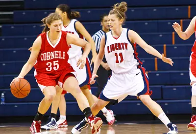 Clare Fitzpatrick broke the ice with a 12-foot jumper on Cornell's ensuing possession, before Liberty reeled off six more points in succession. Back-to-back hoops by Brown pushed the Lady Flames' lead to 14-2, 13:25 before halftime.