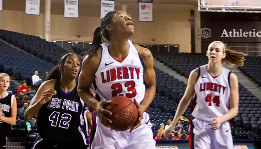 Liberty won the rebounding battle for the 40th straight game, 57-43, and scored 46 points in the paint. High Point forced 24 Lady Flame turnovers, which resulted in 24 points.